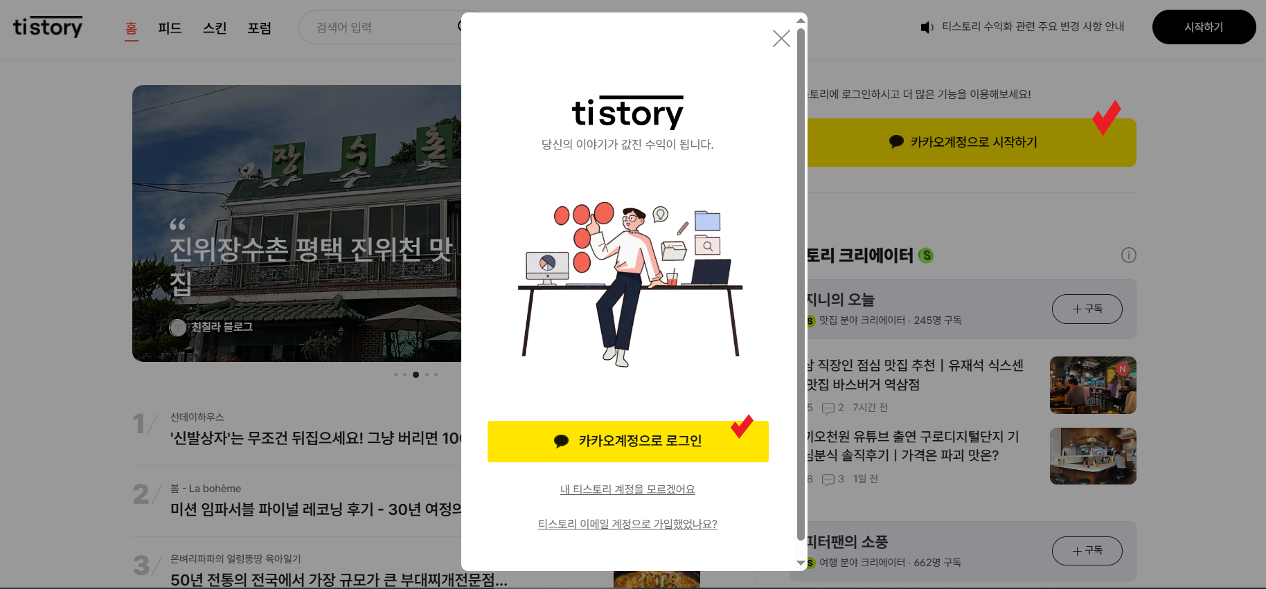 이미 카카오 가입이 완료되었으므로 바로 티스토리로 넘어가셔도 됩니다
