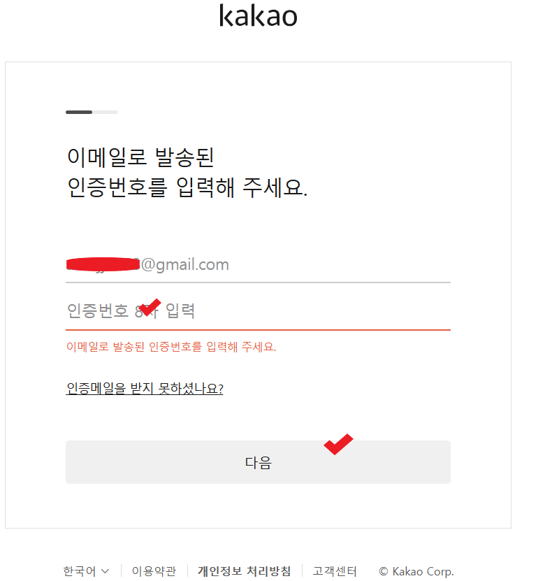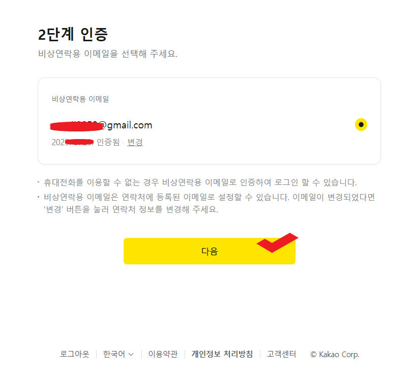 최종확인 ~메일 맞는지 확인 후 다음 클릭!!