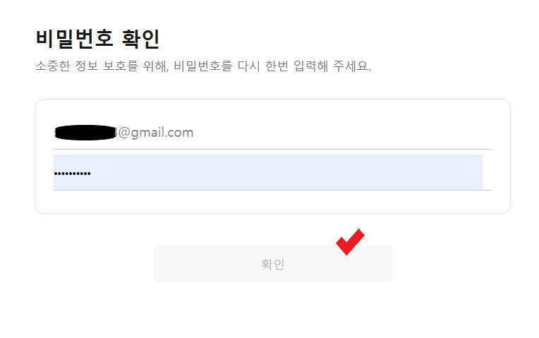 인증하기 버튼을 누르면 보안상 비밀번호를 한 번 더 물어봅니다