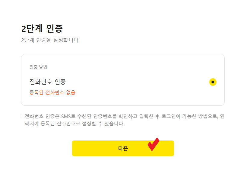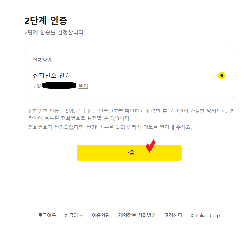그러면 다음 " 버튼이 노란색으로 바뀌고 클릭하시면 돼요